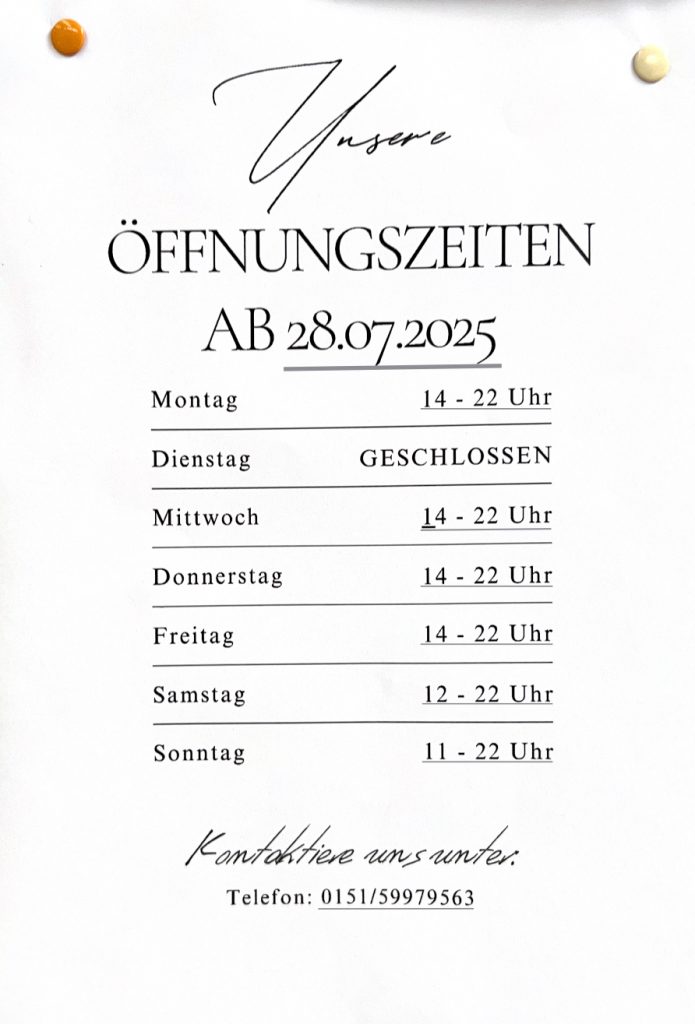 • Mo-Fr: 14:00-22:00Uhr / Dienstag Ruhetag